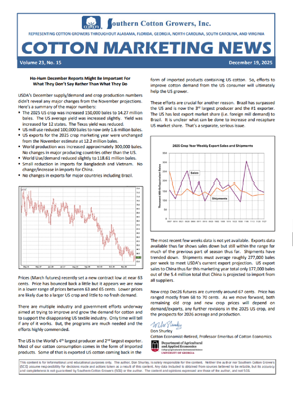 Click the link below for the latest version of the national Cotton Council’s Weekly Cotton market Report, providing current information and market news of interest to members of the U.S. cotton industry.